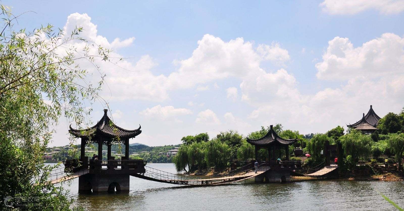 天目湖位于常州溧阳市南八公里处天目湖镇境内,山湖相依,好一颗“江南明珠”。 湖周群山环抱,湖水清冽,间有画若棋盘的田畦,疏密错落的茶园,一幅纯自然的田园风光图。万亩竹海环抱温泉,清新迷人。