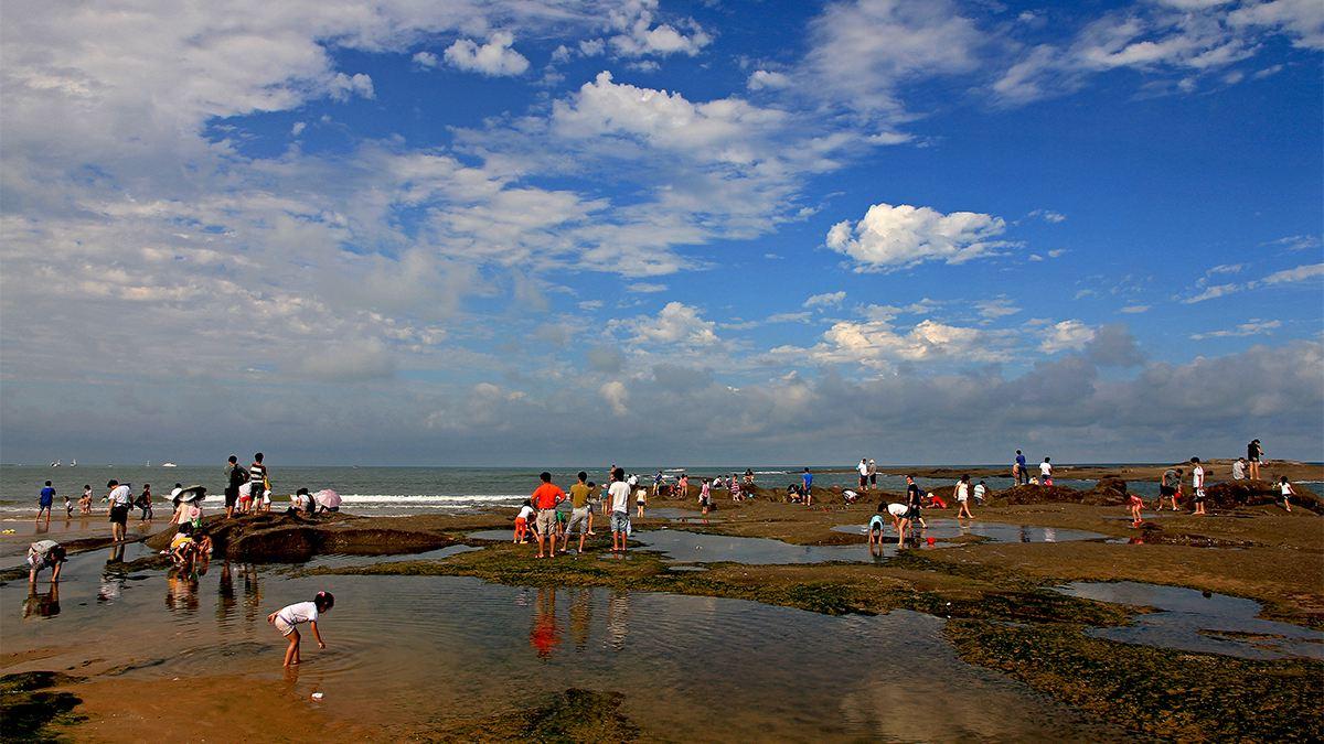 万平口海滨风景区是市区内最大的景区,海岸线长5000米,占地面积760万平方米,游客可在此进行沙滩浴、海水浴、日光浴、沙滩排球等运动,是最能体现日照“蓝天、碧海、金沙滩”特色的景区。