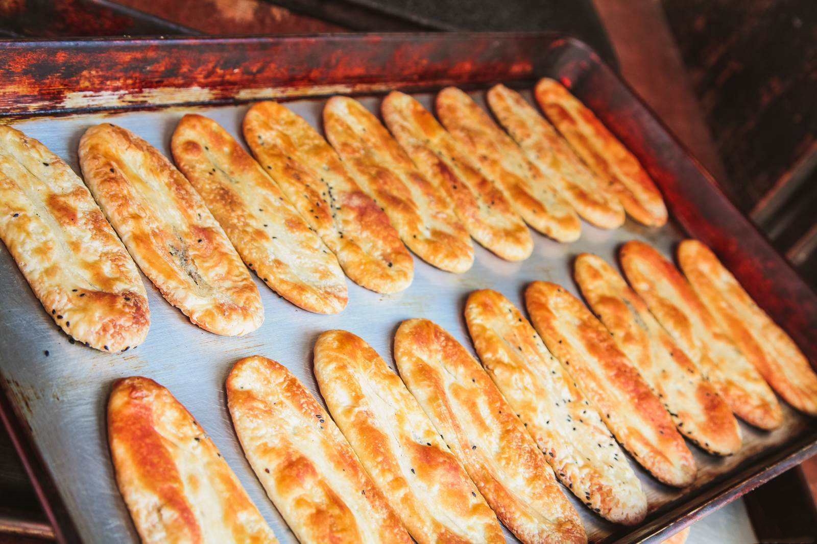 油纸包装,红纸封面,用草绳系着的富安烧饼,透着浓浓的江南古味。虽是一方烧饼但工艺相当复杂,买个饼重12克左右,号称天下最薄的烧饼了。面粉上撒上白芝麻,在两个对着的平底锅里烘制,只要10秒钟就出炉,口感纯粹到薄香脆三个字可以形容。富安烧饼铺开在著名的富安桥上,只此一家,别无分号。当年沈万三出海贸易在海上的主食就是它!