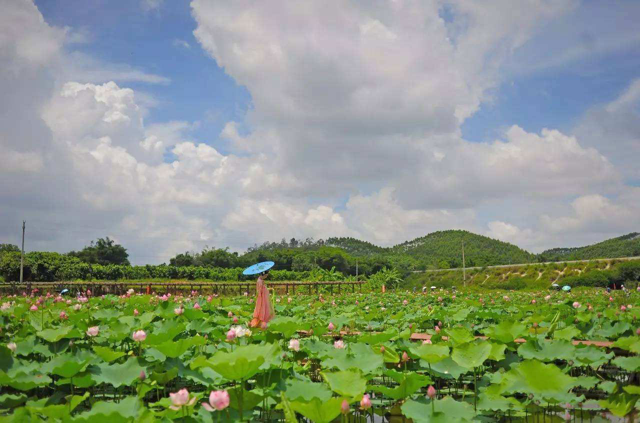 彭村毗邻高州市区,依山傍水。那里有着如大明湖畔的独特风景,连成一片的荷花花苞密集、怒放。到了荷花盛开的季节,既是不少踏青游客爱去之地,也是不少拿着单反的发烧友的聚集之地。