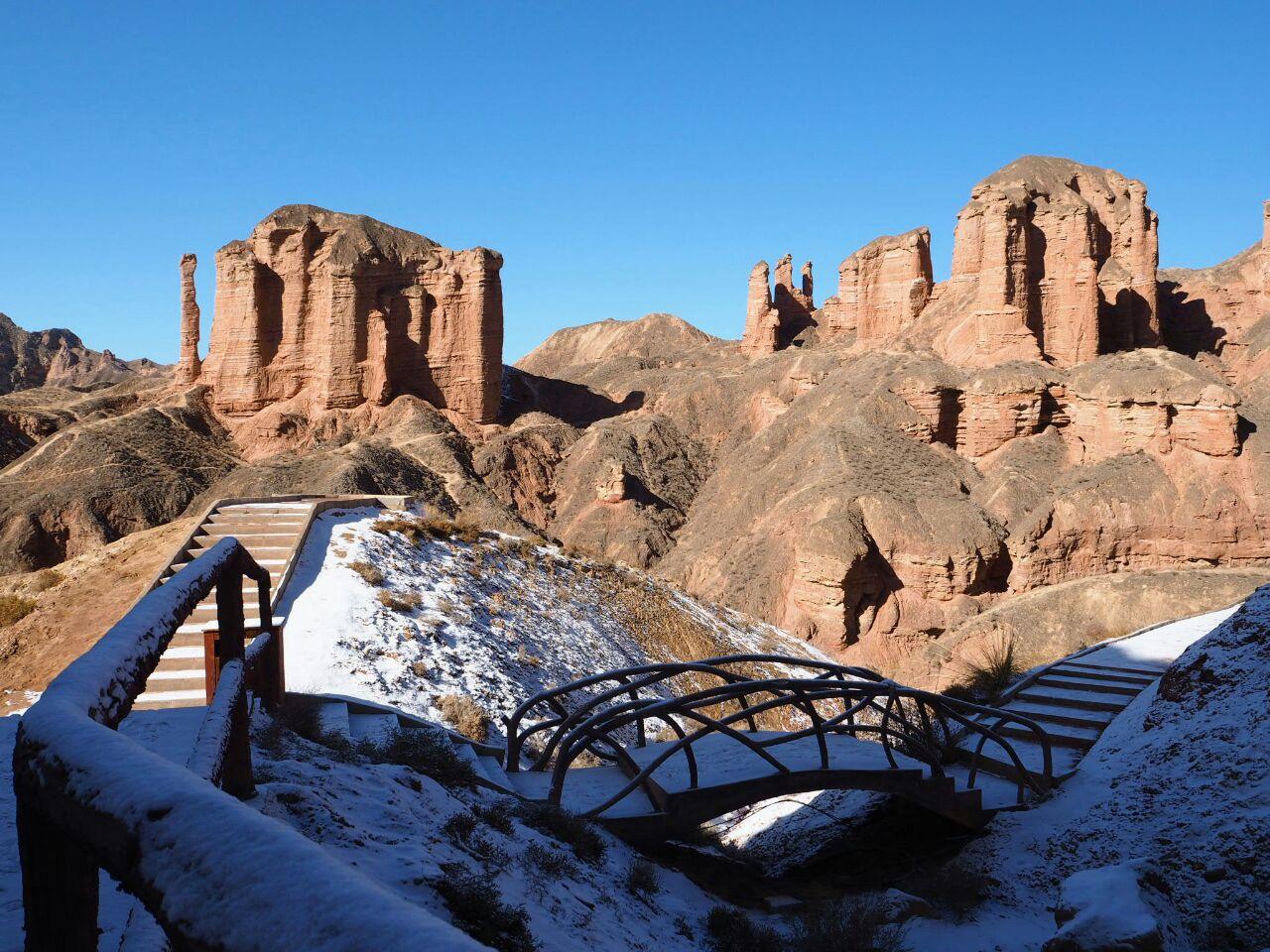 肃南裕固族自治县冰沟丹霞位于祁连山与河西走廊的结合部,在甘肃省张掖市域肃南裕固族自治县境内。为褐红色泥岩、页岩、粉砂岩及淡红色含砾粗沙岩、沙砾岩、砾岩所构成。因沙砾岩较坚硬,经风化后,形成相对凸出的层状岩凸。