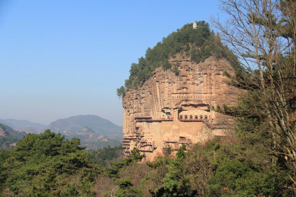 麦积山位于天水市麦积区,是小陇山中的一座孤峰,高142米,因山形酷似麦垛而得名。