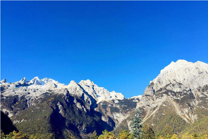 玉龙雪山为云南省丽江市境内雪山群,地处东经100°4′2″-100°16′30″、北纬27°3′2″-27°18′57″之间,在丽江北面约15千米处,全长75千米,是北半球最近赤道终年积雪的山脉,隔江西与中甸雪山、东与绵绵山相并列,北自三江口,向南延伸到北纬27°,如扇面向古城展开。全山的13座山峰由南向北纵向排列,主峰扇子陡最高处海拔5596米,终年积雪,发育有亚欧大陆距离赤道最近的温带海洋性冰川。