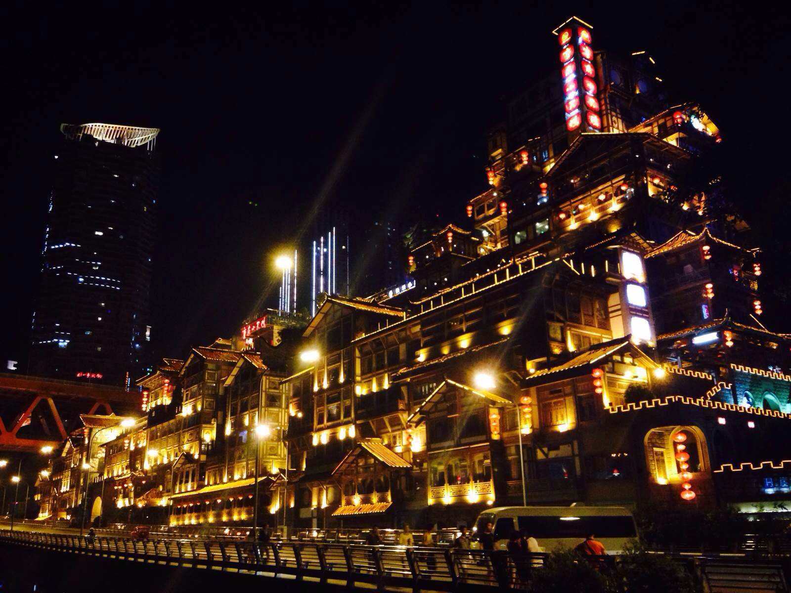洪崖洞临近朝天门,从菜园坝火车站出发,打车也才十几元钱,距离不算远,甭管是节假日、平时,洪崖洞都是人山人海洪崖洞分为11层楼,每一层经营的东西各不相同,一层一层的逛洪崖洞,就像经历了许多场穿越。洪崖洞是免门票,楼顶天台更是一大观光的好去处,站在洪崖洞的楼顶,大半个重庆的风光尽收眼底。夜晚的洪崖洞更是光芒璀璨,灯火渲染着墙体,耀耀生辉,好似一座金碧辉煌的宫殿,又好似一座魔幻之都。洪崖洞里,有一层楼全是卖各色小吃、饮食的,从各色鲜香的美食旁经过,那独特的芳香让人口水直流,真恨不得吃它个地老天荒。