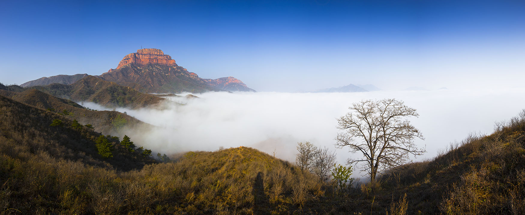 北武当山又名真武山,古称龙王山,在唐代以前就已成为具有道教色彩的朝拜圣地,素有“三晋第一名山”之称。北武当山不仅有悠久的道教历史,更有绚丽的自然风光,漫漫无际的黄土丘陵中,忽然冒出几座由花岗岩整体浇铸而成的石山,突兀争奇,古树参天,不能谓之不奇。
