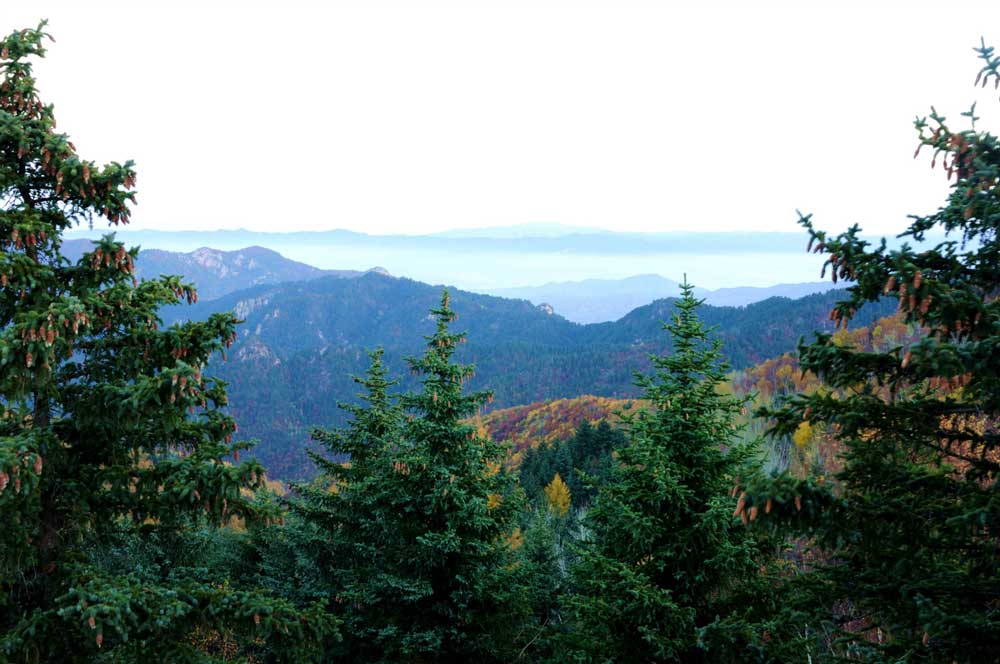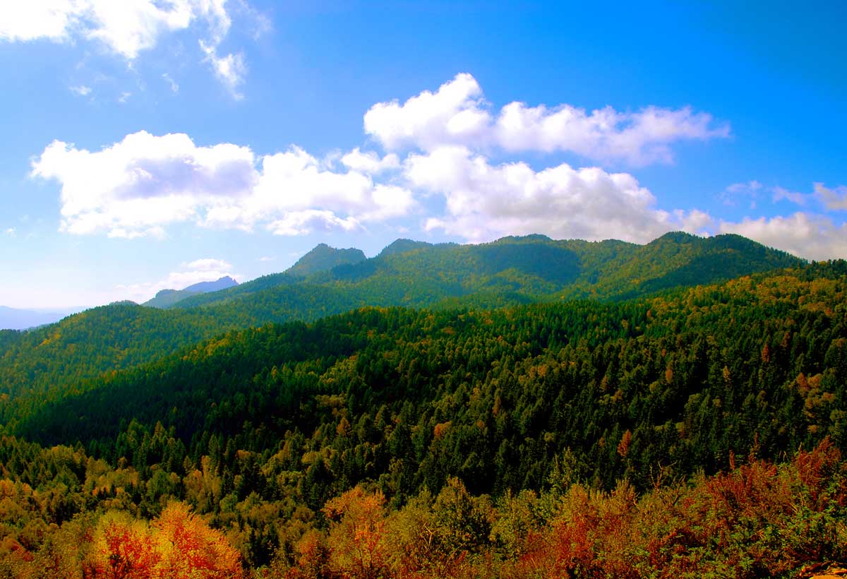 吕梁主峰就在它们附近,就是位于庞泉沟北坡的孝文山,它和云顶山、骨脊山形成鼎足之势,把方园数百里原始森林覆盖的庞泉沟围了个水泄不通。