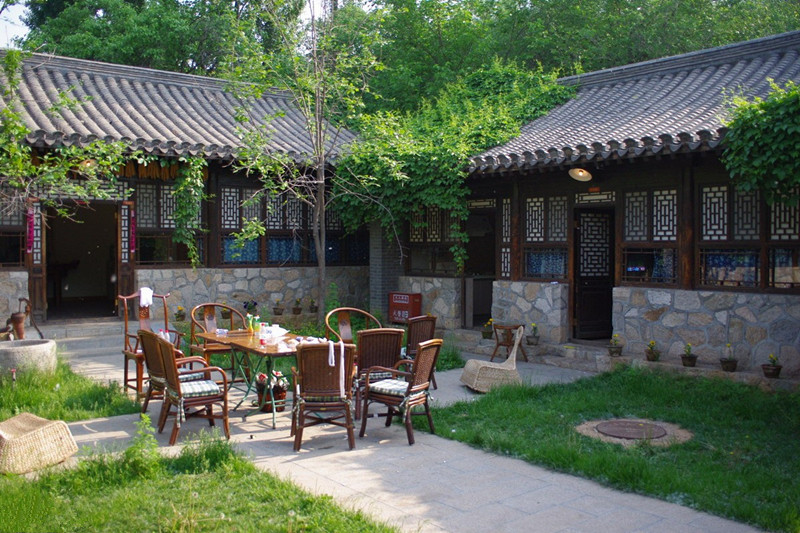 乡景依山傍水,一进里头就透露着一股清爽。建筑大多是欧式的Town-house或别墅,并不是特别张扬,却有着内敛和质朴。户型很多,有标间、有套房、湖景别墅,房间很是干净,比城里一般的酒店要好。最有特色的是这里有三套老北京传统的四合院,都是按照传统布置,里面居然睡的是许久未见的火炕。在院内还寻觅到消失已久的压水的井,尝了尝井水,齿间一片冰凉,看着院内木架蔓延的葡萄藤,心顿时静了下来。如果家庭聚会,推荐四合院或套房,房间里都有卫生间,也能上网。不过唯一不足的是,房间里如果是木头床,会发出一些声音。