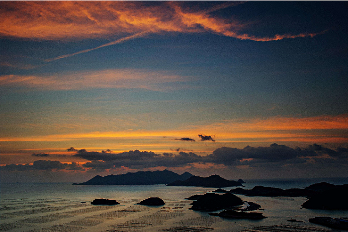 诡谲神秘的满海竿影、梦幻般的海上家园,鸥鸟掠过的金色沙滩褐色礁丛,海上远空中的日落余晖……霞浦好似天生的摄影地。春天天气不稳定,空气不很通透,但往往出现前景清晰远景雾化效果,有一种朦胧梦境的感觉,出来的片子后期减些饱和度就是一幅淡雅的水墨画。