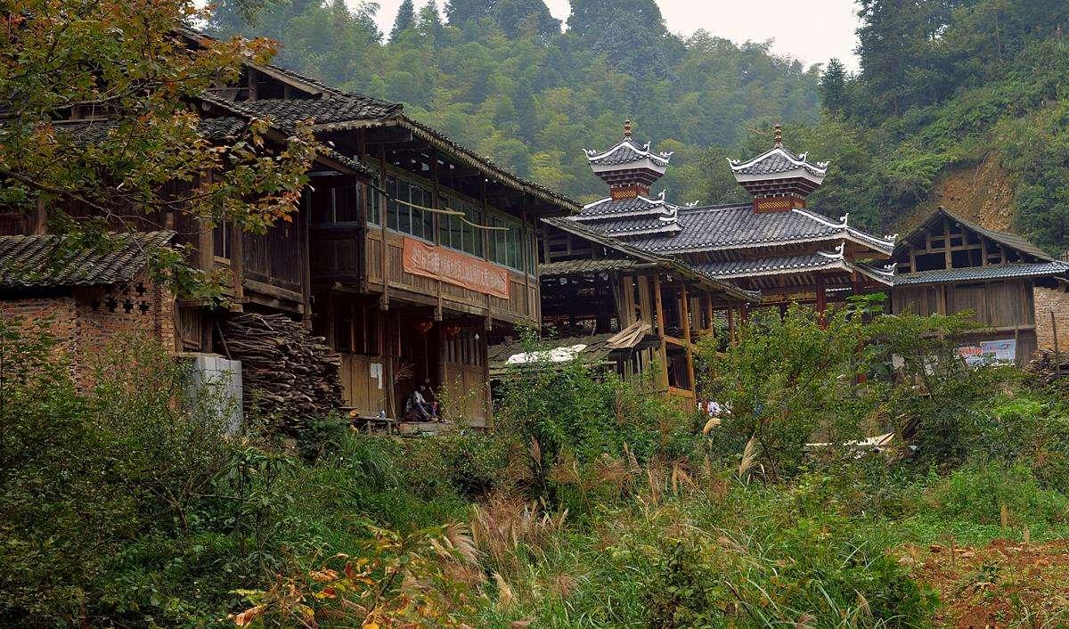 岜沙是一个纯苗族村寨,全村共5个寨子,至今还保留有浓郁的古代遗风和古老的生产方式。这里的男子头顶挽有发髻,穿着自织的无领右开衽铜扣青布衣,直筒大裤管青布裤,常年身挎腰刀,肩扛火药枪,颇有明清武士风貌。