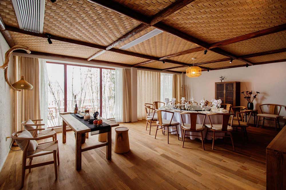 茶乡星谷,位于南京市江宁街道朱门社区,紧靠牌坊社区的黄龙岘茶文化旅游村。民宿整体采用蝶舞形式的装配式重型木建筑构建,共有7栋,呈北斗七星状分布,从远处望去,仿佛空悬山上。茶乡星谷精品民宿穿梭于竹林之中,群山环绕,层林叠翠,“天然氧吧”等您来尽情呼吸。