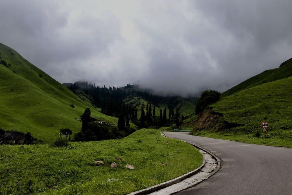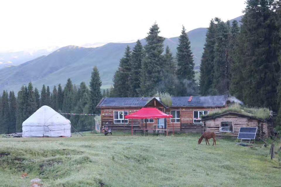 琼库什台,在哈萨克语中是“大平台子”的意思。 琼库什台沟壑纵横,在草原中颇具阳刚之美。台地上纵切出无数的沟壑,将平静的草原勾画的象大海里掀起的波浪。你可以在这里看到蓝的天、白的云、白云下面是银色的雪山、墨绿的杉林、淡青色的草原和五颜六色的花海,几种色彩层次分明,色调和谐,形成一幅天然图画。