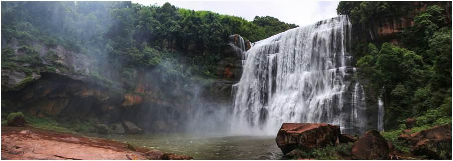 上山后,首先映入眼帘的是赤水大瀑布。不知为何,它给我的竟然是月亮女神阿尔忒弥斯的感觉。飞泻而撞击出的巨大的白银色水花,是她的长发;刺骨的寒水,是她的妆容;有节奏的流水,是她那会呼吸的骨感肌肤,她是希腊圣洁的月光女神,同时也是我心中的中国瀑布女神!