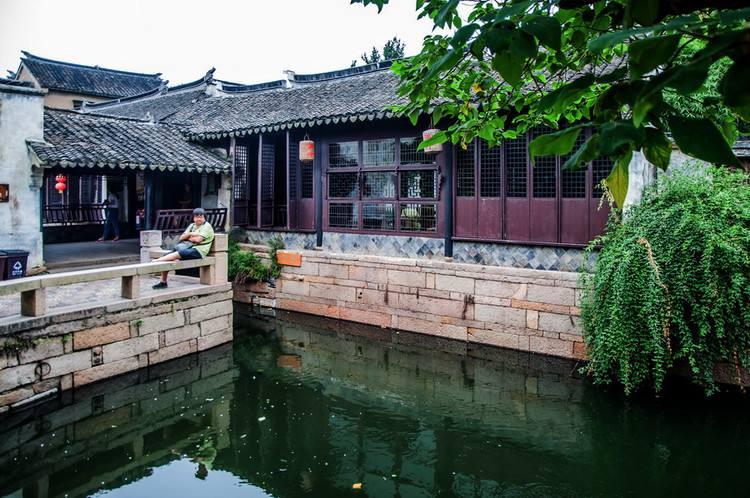 正对着大门的那座桥,就是举世闻名的双桥了。双桥最能体现古镇文化的神韵,桥面一横一竖,桥洞一方一圆,样子很像古时候人们使用的钥匙,所以当地也称之为“钥匙桥”。双桥为什么这么出名呢?那是因为1948年春,上海著名画家陈逸飞乘坐小船来到周庄,看到了双桥,觉得自己回到了记忆中的童年。于是,他就以双桥为背景创作了一幅名为《故乡的回忆》的油画。经新闻媒体宣传,陈逸飞的画让默默无闻的周庄走向了全世界。