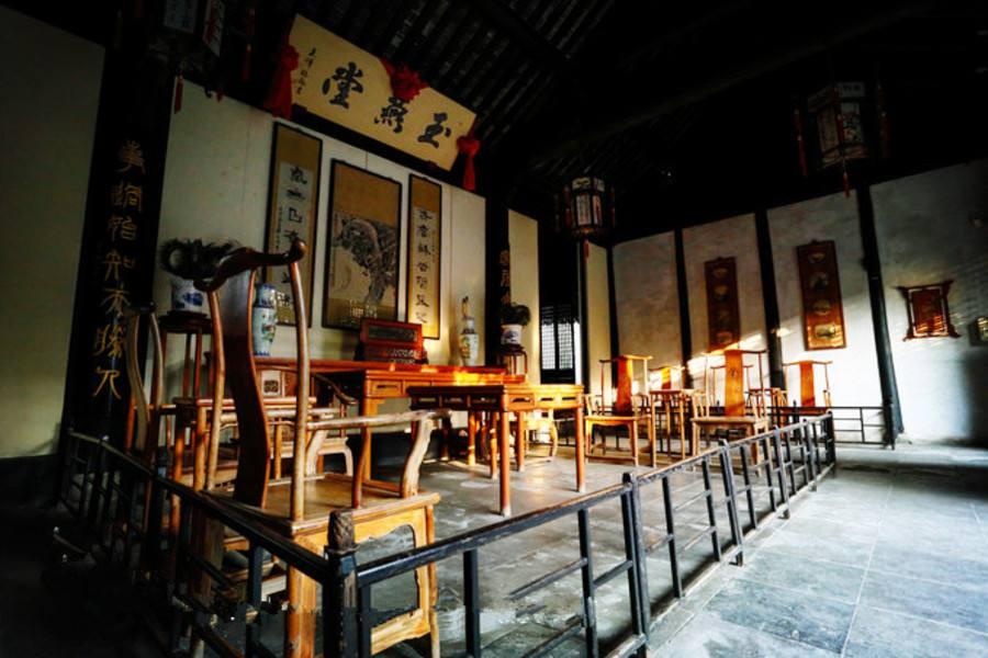 最后,我们来到举世闻名的张厅。刚跨进门槛儿,自己仿佛成了小古人。我好奇的四处张望,只见雪白的墙,乌黑的瓦,老式的窗框,还有那推动时会发出“咯吱咯吱”响的棕色大门。整个流览了一遍张厅,用一个词来形容就是“大”!里面有接客的客厅,有女主人接见客人的房间,还有小姐窥探外花园的长椅,有自家出门的小船,还有佣人居住的场所,餐厅……可见这是一户大官宦人家!