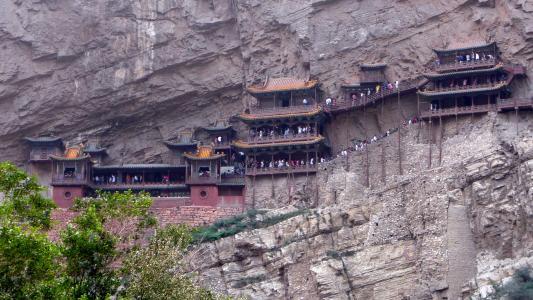 位于北岳恒山金龙峡的峭壁上,自古以来就被誉为北岳恒山第一奇观。悬空寺始建于1400余年前的北魏时期,在以道教圣地著称的北岳恒山,它是唯一一座佛、道、儒三教合一的宗教建筑。悬空寺布局为“一院两楼”,总长32米,楼阁殿宇40间,它创意奇绝,对山势地形的巧妙利用、对力学原理的完美掌控,使之形成了悬空而建的视觉效果,民间以“悬空寺,半天高,三根马尾空中吊”来形容其如临深渊的险峻。