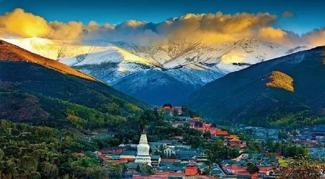 国家自然与文化双遗产,中国四大佛教名山之首,在中国佛教发展史上具有鼎足轻重的影响力。佛教在五台山的传播,起源于汉代,鼎盛于唐朝,历代均有传承,现存寺庙四十余座,主要集中在台怀镇,台外也有散落,其中佛光寺、南禅寺为唐代遗构。五台山是文殊菩萨的道场,文殊菩萨做为释迦牟尼的左胁侍专司智慧,五台山众多寺庙都以供奉文殊菩萨为主,以塔院寺、显通寺、菩萨顶、黛螺顶、万佛阁最为知名。