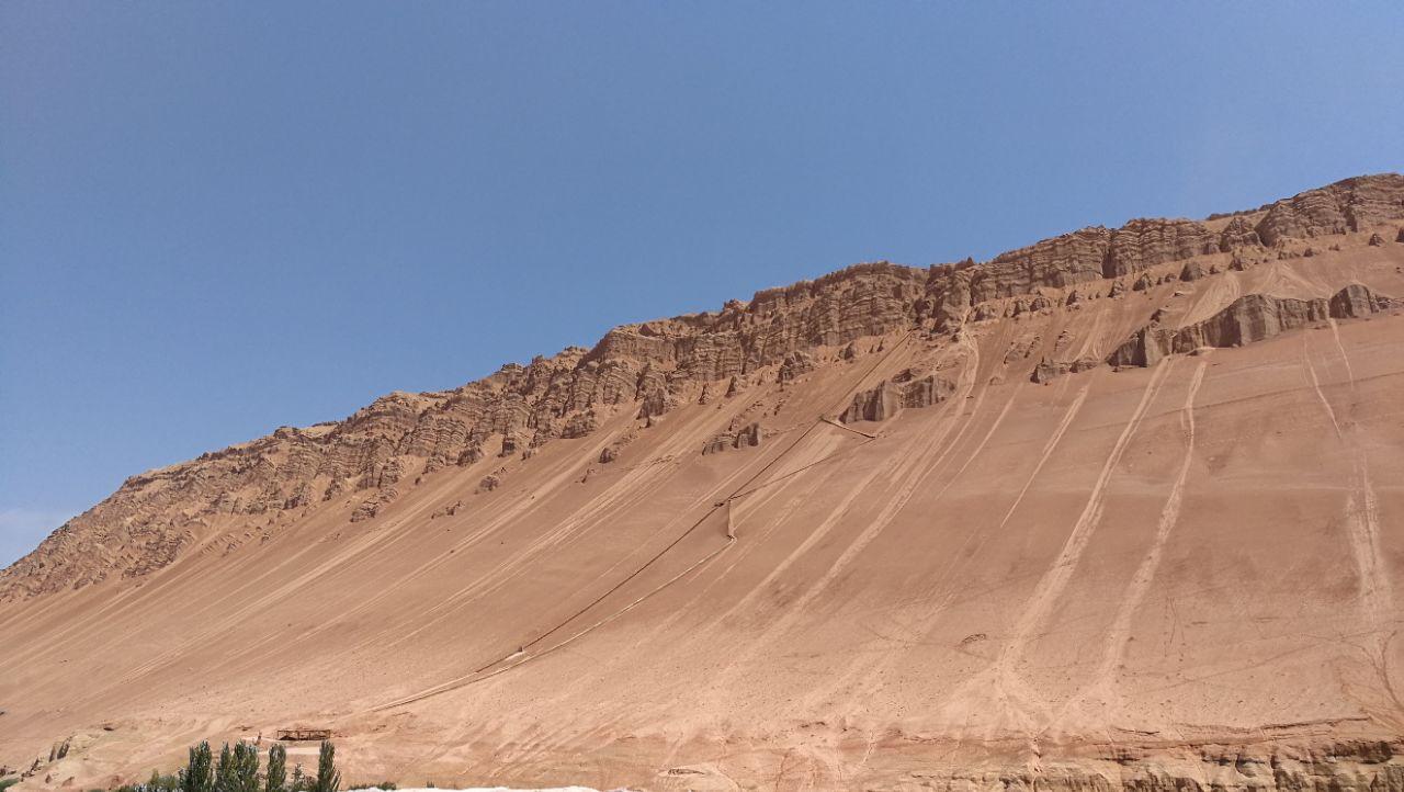 火洲闻名遐尔的“清凉世界”-----葡萄沟,位于吐鲁番市东北13千米的火焰山峡谷中。该沟是一条不太深的切蚀沟,南北长8千米,东西宽约0.5千米,最宽处方可达2千米,一条小溪流贯其间,沟侧沿隙中时有汩汩泉水渗出。沟中绿荫蔽日,满沟全是层层叠叠的葡萄架,花果树木点缀其间,村舍农家错落有致,山坡高处还有许多空心土垒砌专门晾晒葡萄干的“晾房”。