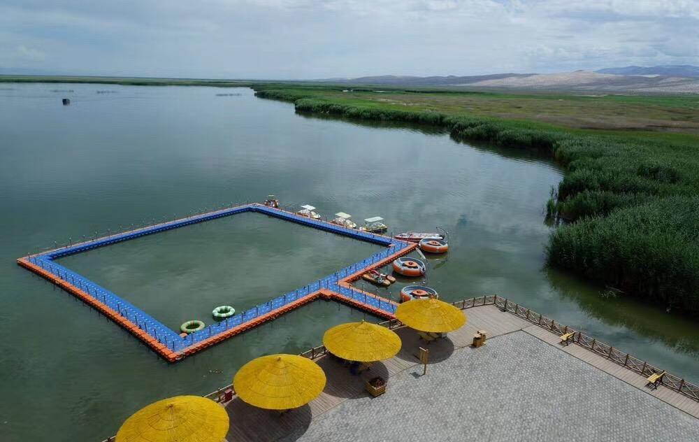 6月,湖中莲花盛开,野鸭欢游其间。10月,红黄树叶相间,交相辉映,景区景致构成十分独特,人称“塞北小江南”。