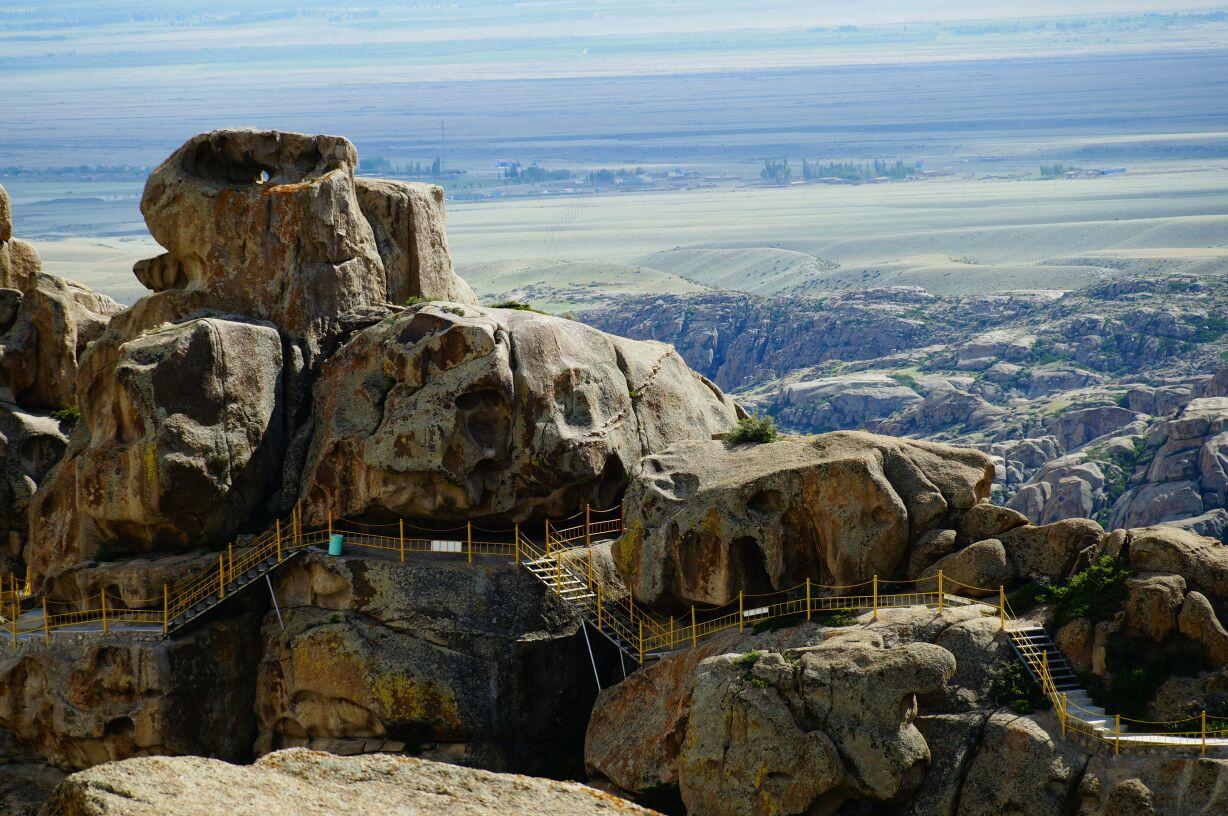 行程描述:上午在吉木萨尔县用过早餐后前往世界文化遗产、全国重点文物保护单位——北庭故城参观,之后驾车沿G335/大奇高速行驶约90km,到达国家4A级景区——奇台江布拉克,欣赏低山草原和万亩麦田风光、体验天山怪坡和哈萨克族民俗风情,中午在景区所在的半截沟镇用餐休憩后,驾车沿G335/大奇高速继续行驶约140km到达木垒县用晚餐,住宿。