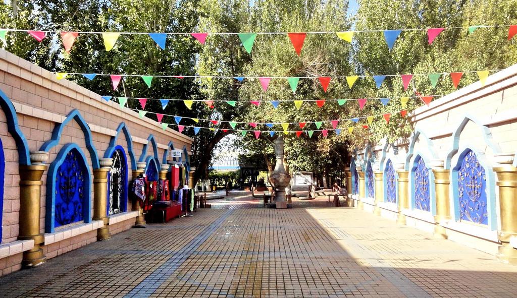 吐鲁番坎儿井乐园占地面积7亩,区内流水淙淙,林木参天,景色迷人。悠长的葡萄走廊、平展如毯的草坪、风格别具的坎儿井研究中心展览厅,使人爽心悦目,胜似世外桃源。