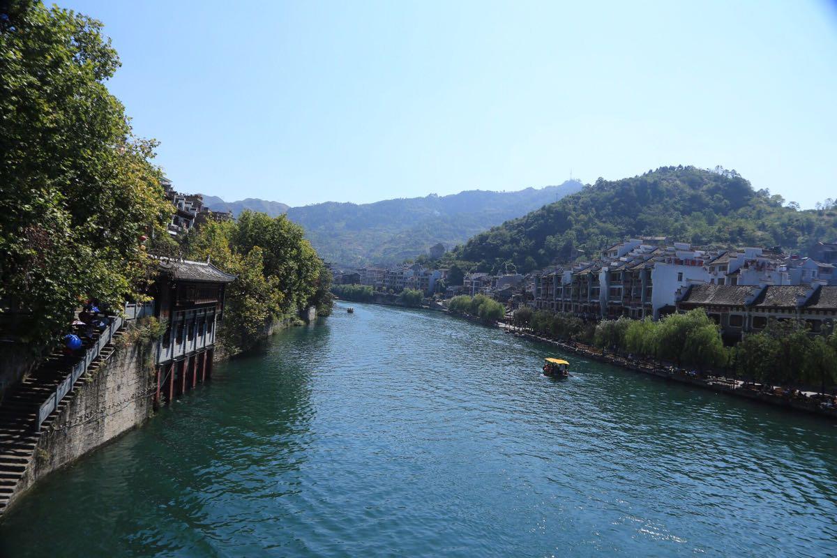 镇远古镇依山依水而建,城内古街古巷曲径通幽。石桥城垣错落有致,碧水晨雾姿态万千,春江渔火诗意盎然。杉木河河床两岸山峦重叠,峭壁危岩比比皆是,青松苍郁枝虬刚毅地挺拔于白云端。