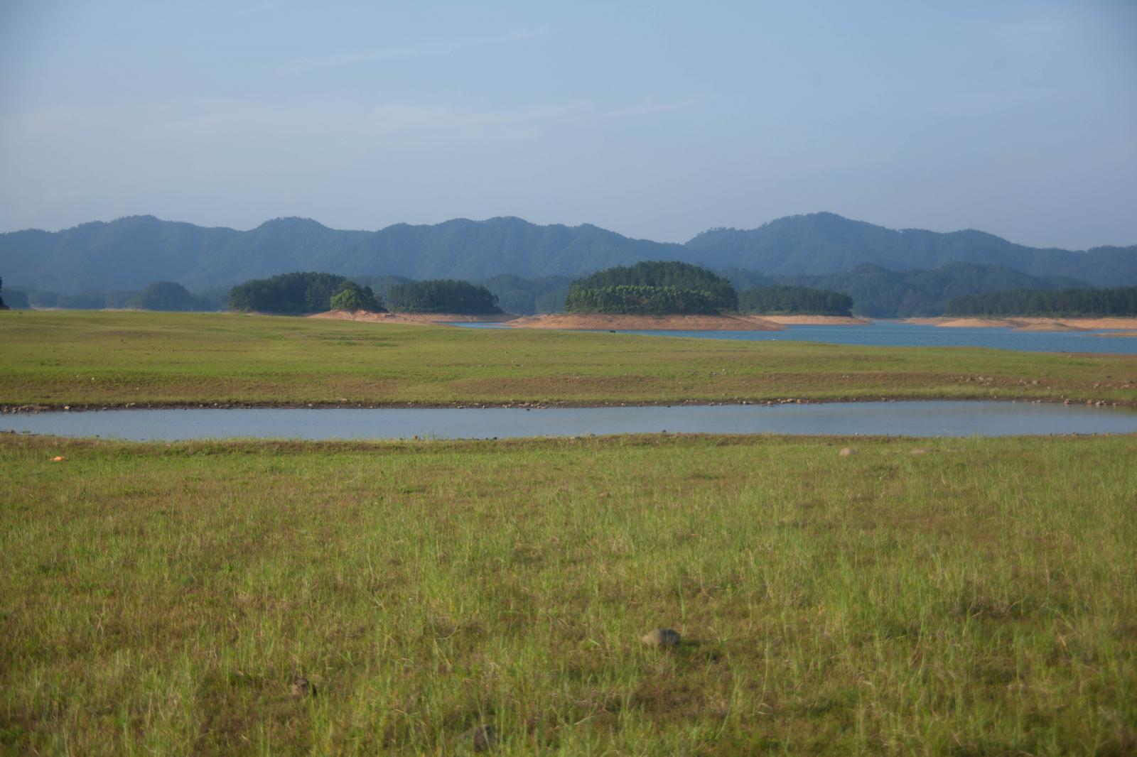 寻皇大草原占地数百亩,宽阔平坦,天然自成,景色旖旎,青翠满目,是南国不可多得的草原风光。草原背靠巍巍群山,面向碧绿平湖。草原面向着素有“广东千岛湖”之称的凤凰湖湖畔,138个青绿色小岛,星罗棋布、千姿百态镶嵌在湖水中央,构造成一副壮观,优美的自然山水画。