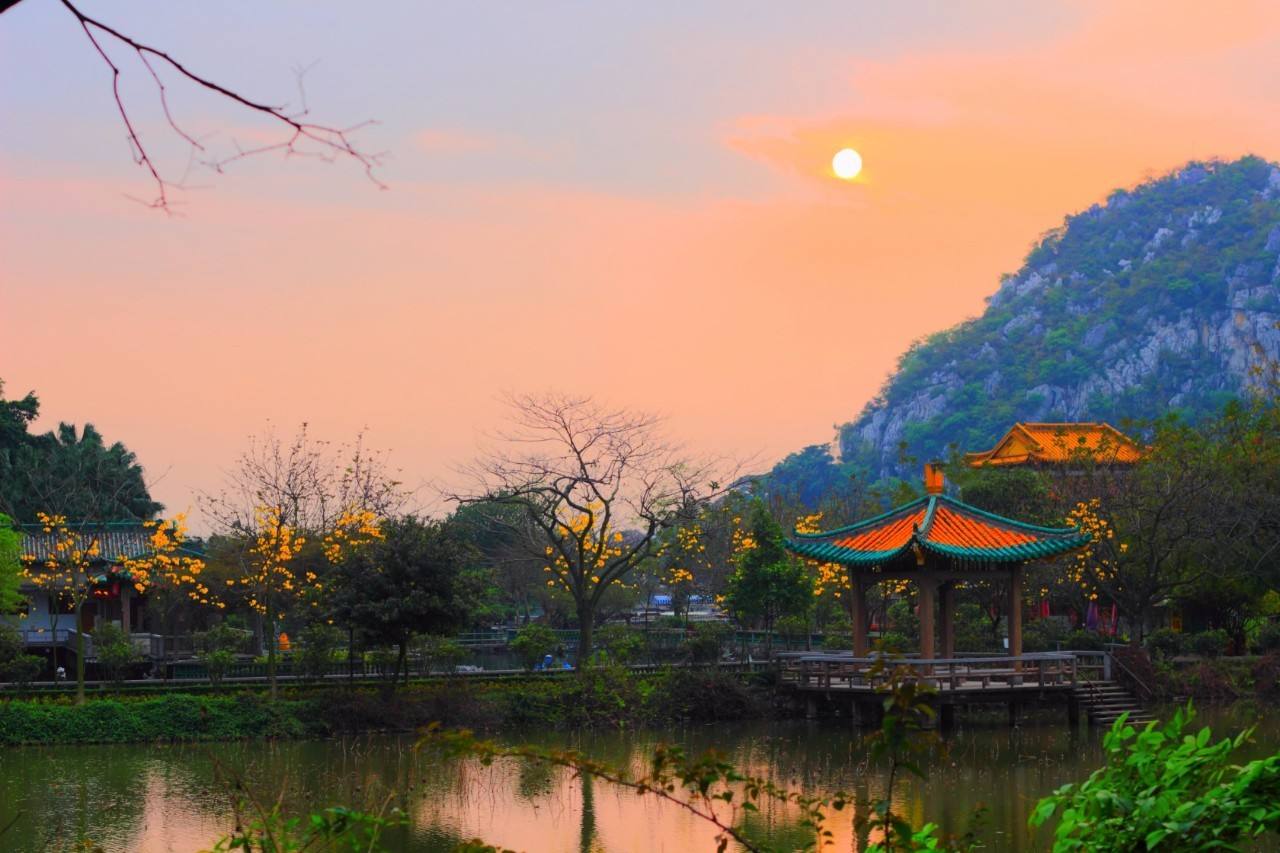 七星岩位于肇庆市,这里以喀斯特溶岩地貌的岩峰、湖泊景观为主要特色,七座排列如同北斗七星的石灰岩岩峰巧布在湖面上,20余公里长的湖堤把湖面分割成五大湖,风光旖旎。