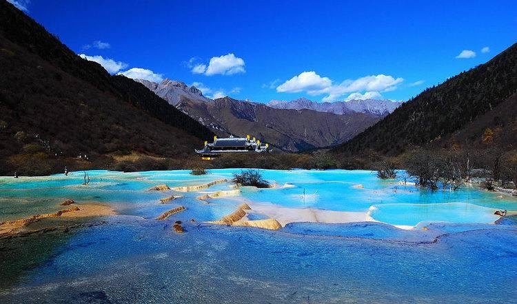 尹福地区的自然生态风景区,那里青山高耸,树木遮挡阳光,水声荡漾。 这就像天界之美和人类之美。