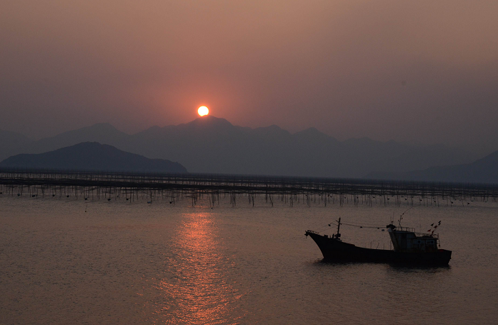 东壁,是霞浦的一个小村庄。这里依山临海,视野开阔,是个拍日落的理想景点。特别是紫菜季节收获季节,诡竿谲影,船只穿梭,落日熔金。