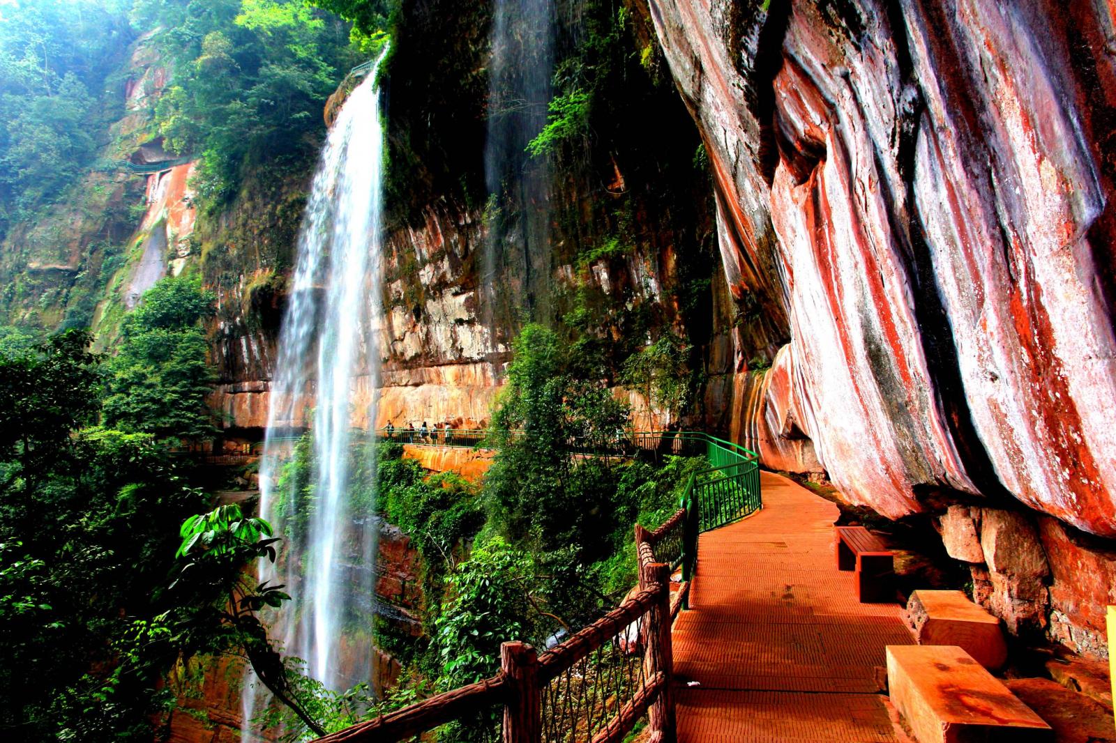 佛光岩景区素有“丹霞第一园”、“赤景一绝”等美誉,以“丹霞绝壁、天下奇观”的大白岩和“天造地设、鬼斧神工”的五柱峰为主体景观,丹霞地貌、奇峰异石、绝壁岩穴、五柱峰、白龙瀑、丹霞城堡、茶花林等30多个靓景奇观。