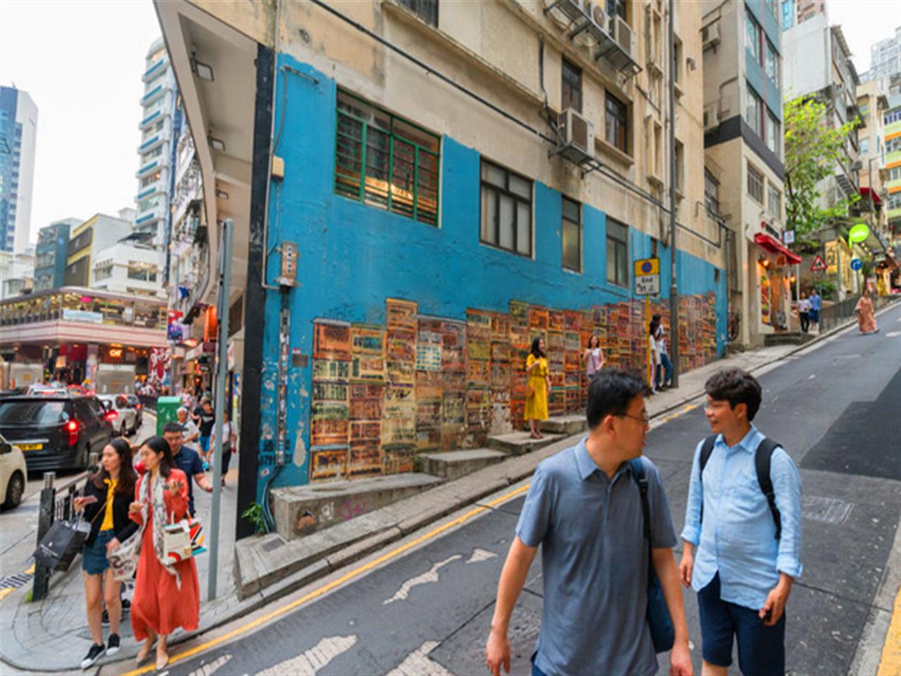 在荷里活道48号和嘉咸街46号交界处,有一片成群的涂鸦,描绘了香港密密麻麻的街区形象。墙上所画的香港九龙寨城现在已经不复存在了,但这种涂鸦艺术却能让我们一窥旧时代的风情。这幅画本身是一个合法作品,是后面的商店雇佣了英国著名的涂鸦艺术家Alex Croft创作的,所以这家店用这幅画的版权制作一些周边商品,作为伴手礼也是不错的选择。