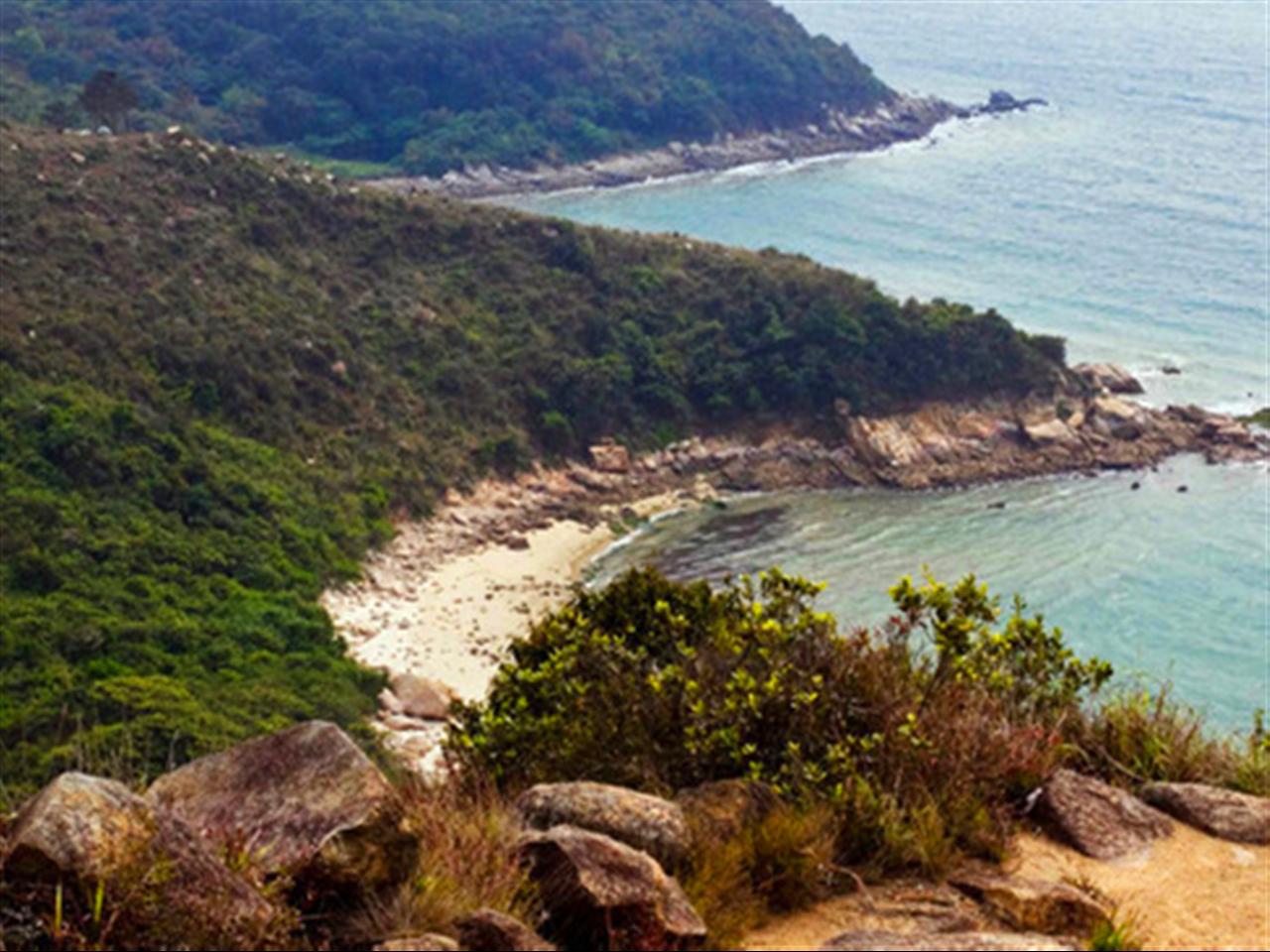 这个狭小的海滩由于地理位置稍偏远,游客稀少,因此未遭到过多破坏,可以算南丫岛环境最幽静,风景最美的海滩了,也是远眺榕树湾的最佳观景点。走到这里,基本上家乐径已经走完了大半程,可以稍事休息,泳滩洗手间、自动贩卖机、直饮水机等设备一应俱全。