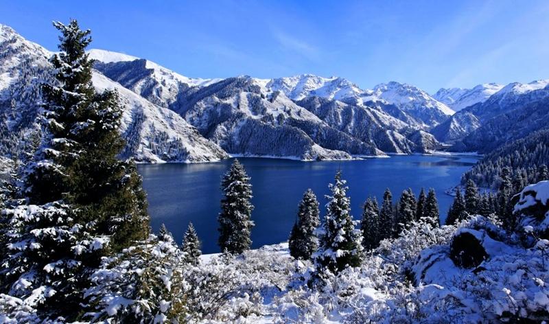 天山天池,世界自然遗产,国家AAAAA级旅游景区,国家地质公园,国家重点风景名胜区,全国文明风景旅游区,国际人与自然生物圈保护区,中国最佳旅游去处,最佳资源保护的中国十大风景名胜区,中国十大魅力休闲旅游湖泊。天山天池古称“瑶池”,地处新疆维吾尔自治区昌吉回族自治州阜康市境内,博格达峰北坡山腰,是以高山湖泊为中心的自然风景区,距乌鲁木齐市97公里。湖滨云杉环绕,雪峰辉映,非常壮观,为著名避暑和旅游地。