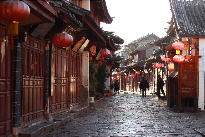 明亮的阳光下,丽江古城(大研镇)一座具有浓烈人文气息的小城。总会有步履缓慢的上了年纪的纳西老人悠闲地踱步。城市布局错落有致,既具有山城风貌,又富于水乡韵味。
