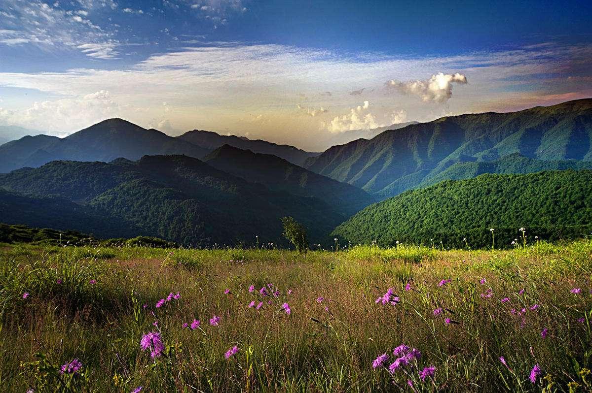 摩围山森林覆盖率达91%,有绮丽气象景观的飞云口、旭日东升的观日峰、山间石林迷宫、甜蜜浪漫的罗曼谷。最大的亮点是空气非常好,躺在这样的花丛中睡上一觉,真的是不要太惬意啦!