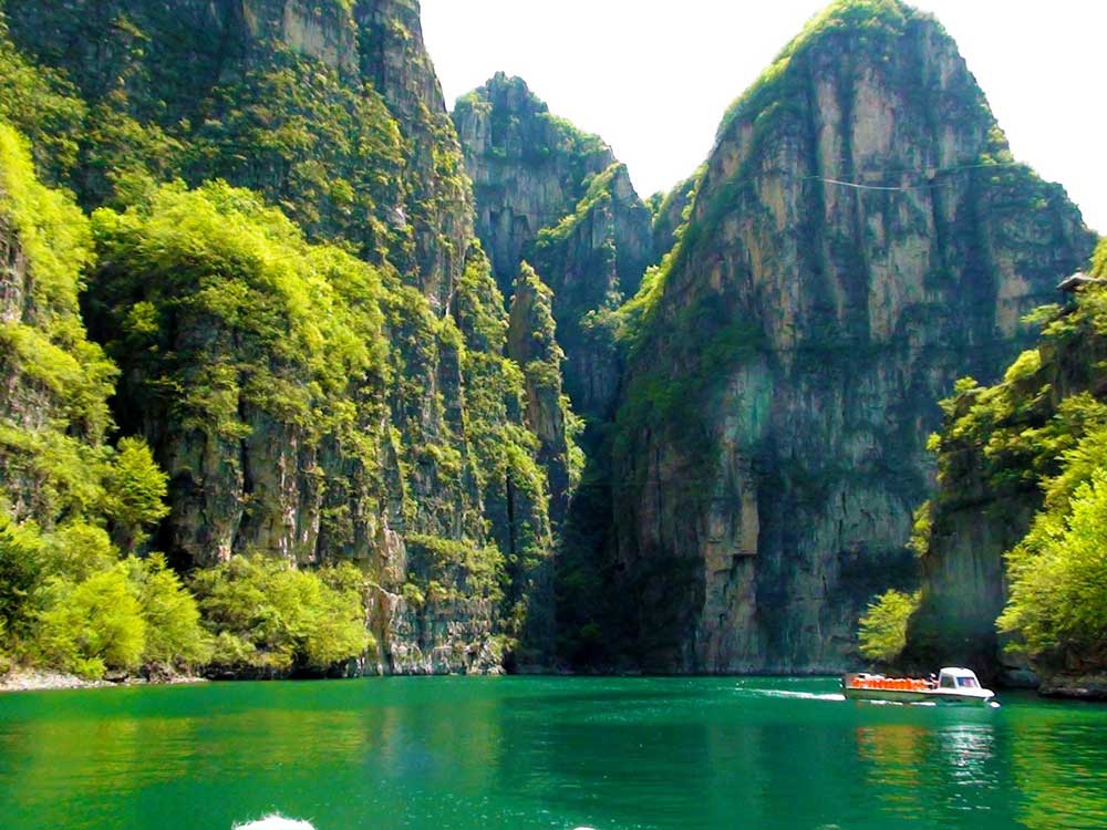 龙庆峡古称"古城九曲",被人们誉为北京的"小漓江",峰峦峭立,山清水秀,7公里长的峡谷既有南方山水的秀丽旖旎,又有北方景致的伟岸雄奇,开阔与幽深间或,险峻与浅滩并存,是北京十六景之一。