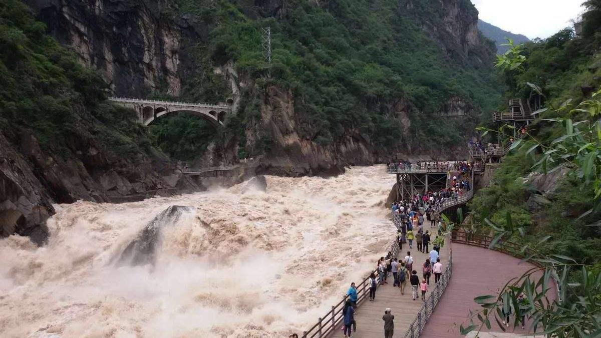 发源自青海格拉丹东雪山的金沙江迢迢千里奔波到此,突遇玉龙、哈巴两座雪山的阻挡,原本平静祥和的江水顿时变得怒不可遏,形成了万里长江第一大峡谷,横穿哈巴和玉龙雪山之间。虎跳峡全长近二十公里,由上到下分为上、中、下三段,水流落差达到200多米,山高谷深,狭长壮观!