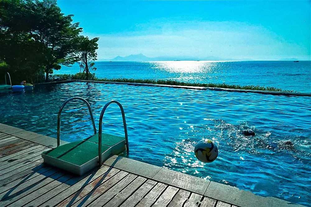 酒店内有处超美腻的无边泳池,身处无边泳池与远传大海连成一片水天一色,一望无际就如Tiffany蓝一样,美得让人心动。