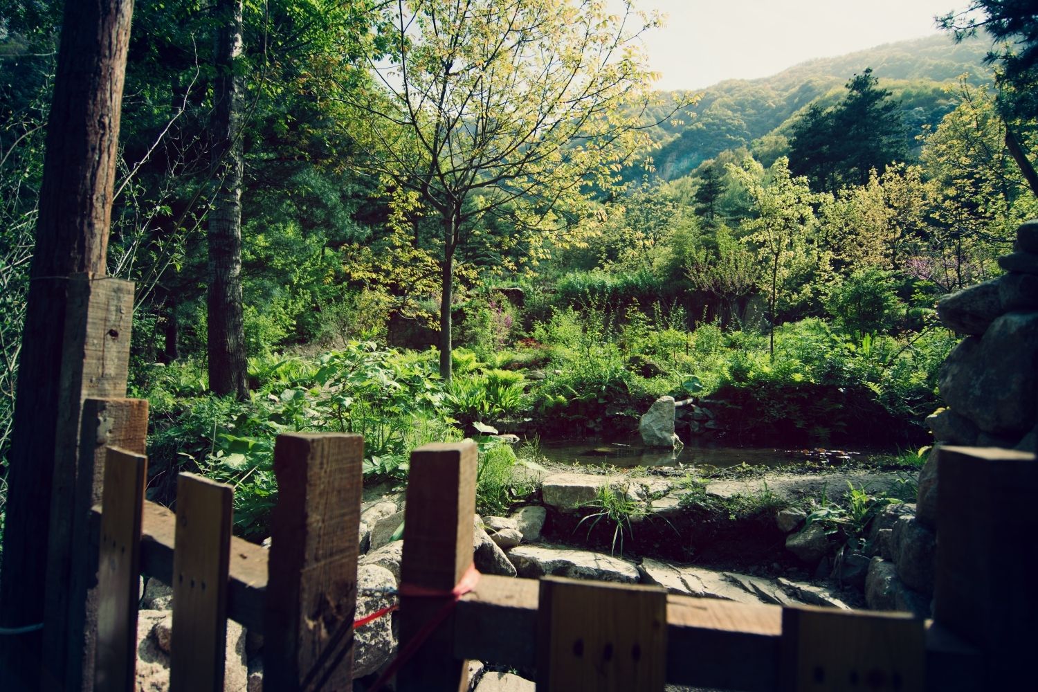 要去老县城,必须通过黑河森林公园,这里风光迤俪、民风淳朴、有着清代遗留的残垣断壁、寺庙大钟,可谓喧嚣闹市的后花园。