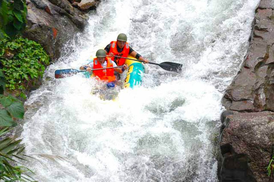 漂流有三种选择,一种是全程勇猛漂,长度4.8公里;第二种是天然猛士漂,长2.8公里;第三种是连接观景勇士漂,长2公里。