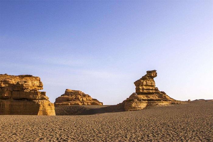 从敦煌市区驱车前往,穿过一大片戈壁荒漠,大约一个多小时后便抵达久负盛名的玉门关下,然后再沿曾是丝绸之路古道的疏勒河谷西行85公里即到。敦煌雅丹地貌属于古罗布泊的一部分,在敦煌这块神奇的土地上,大自然创造出了许多奇观异景。敦煌雅丹位于新疆、甘肃交界处,距玉门关西北80余公里处,有一座典型的雅丹地貌群落,布局有序、造型奇特、是一座罕见的天然雕塑博物馆。堪称敦煌的又一奇观,它是大自然鬼斧神工,奇妙无穷的天然杰作。和玉门关形成敦煌第二大景区,因其怪异特点,故有魔鬼城。