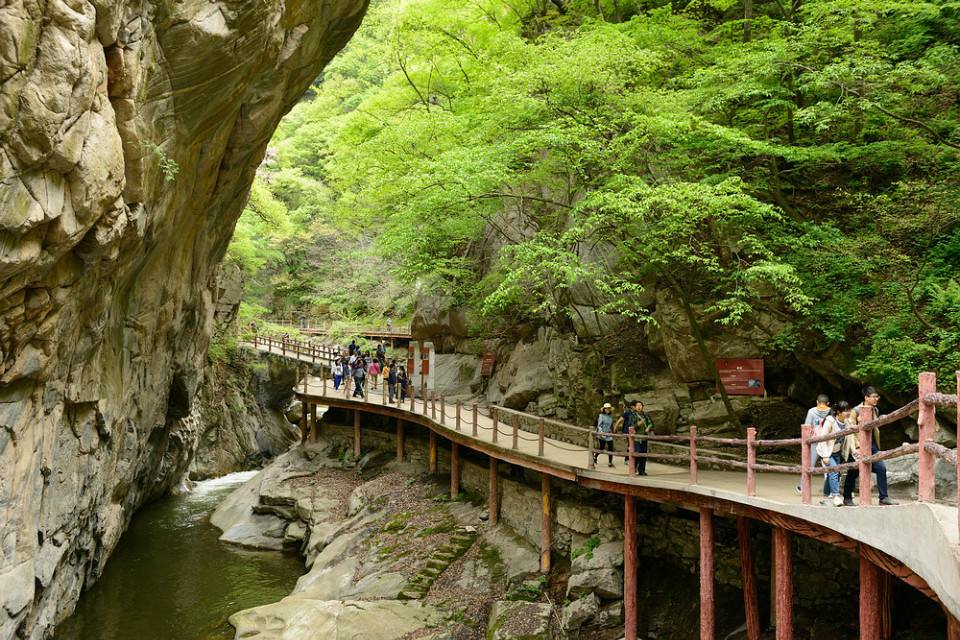 位于陕西省商南县境内的西南部新开岭腹地,被誉为“峡谷奇观,生态王国”,森林公园的流泉飞瀑婀娜多姿,其自然气候属亚热带半湿润季风气候向暖温带半湿润气候过渡类型。森林公园以雄伟险峻的山体和茂密的森林为基础,以优美绚丽的水景为特色,以幽深曲折的峡谷为主体。