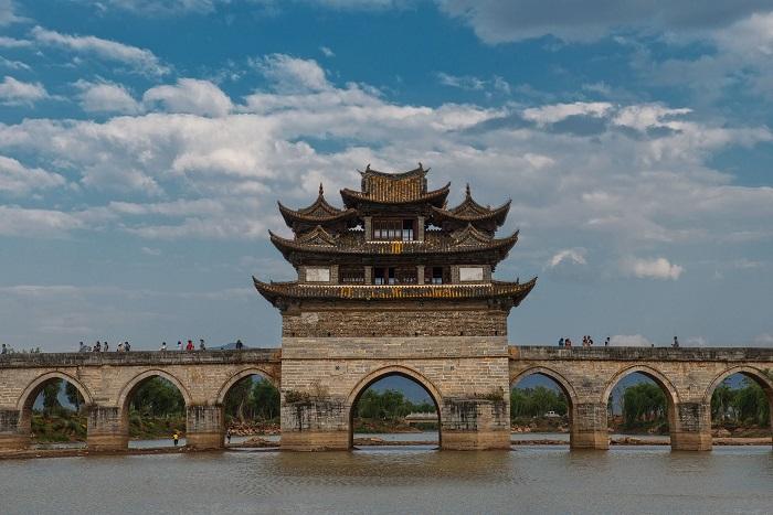 国家级重点风景名胜区-建水。它古名“步头”,近曰“临安”,现叫“建水”。长期以来,由于历史尘埃的厚积,交通条件的限制和地理位置的僻远,在这座边城中,她深藏的历史文化、人文景观,民族风情以及众多的、至今尚保留完好的古建筑、古文物、古遗风等。县境内文物古迹荟萃,风景名胜诸多,有始建于公元1285年,占地约7.6万平方米,在中国首屈一指的国家级文物保护单位文庙;雄踞红河岸边国家级文物保护单位彝族土司府署;在云南省内罕见的宋式大型木桥架古建筑指林寺;历经风雨600多年仍巍然屹立,比北京天安门早建28年的朝阳楼;被列为中国18座著名大型古桥之一的双龙桥;具有"滇南大观园"美称的清代大型民居朱家花园;历史文化名村团山等。