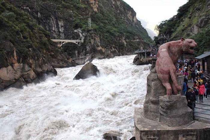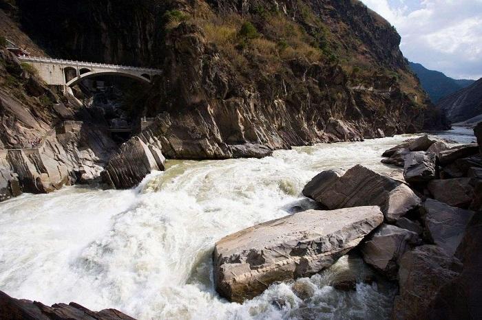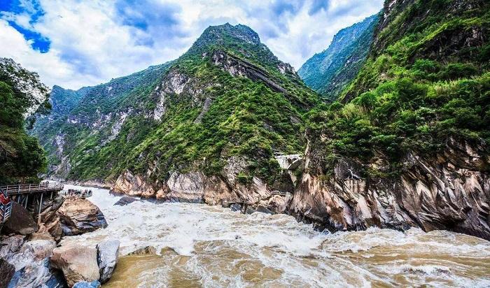 这是虎跳峡最壮观的一段中虎跳峡,两岸山涯垂直陡峭、如刀削笔直,象一道巨大的石门试图截流江水,故得名“一线天”。现在常规的休闲游一般不会太去中虎跳游玩了,如果要去中虎跳峡,大家尽可能的去选择某些徒步活动或者定制活动,也是因为时间较长、且中虎跳峡并不太完善的缘故。虎跳峡是中国经典十大徒步线路之一,穿梭于险峻的高山峡谷间,欣赏震憾的雪山群峰,聆听气势磅礴的轰鸣江水,惊险而刺激。