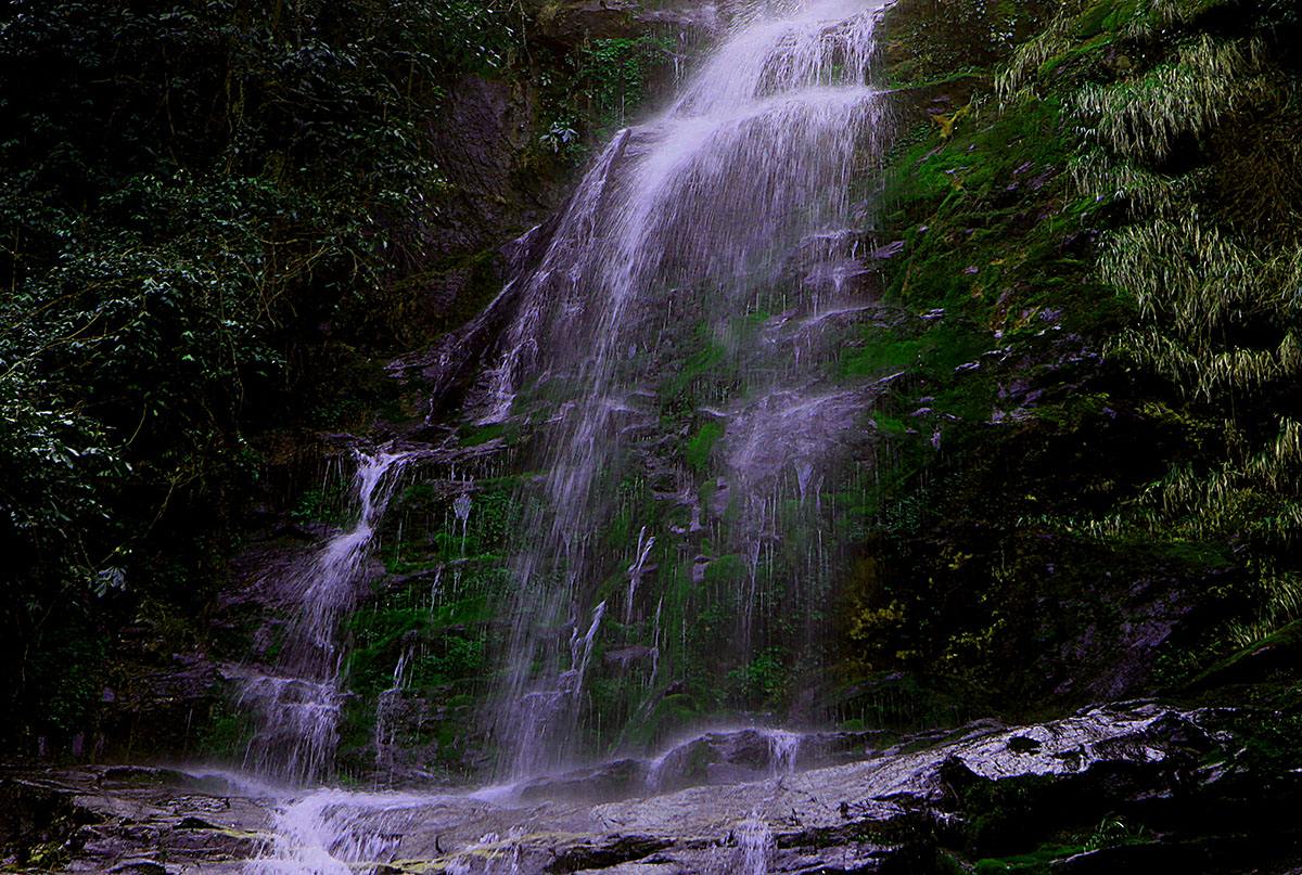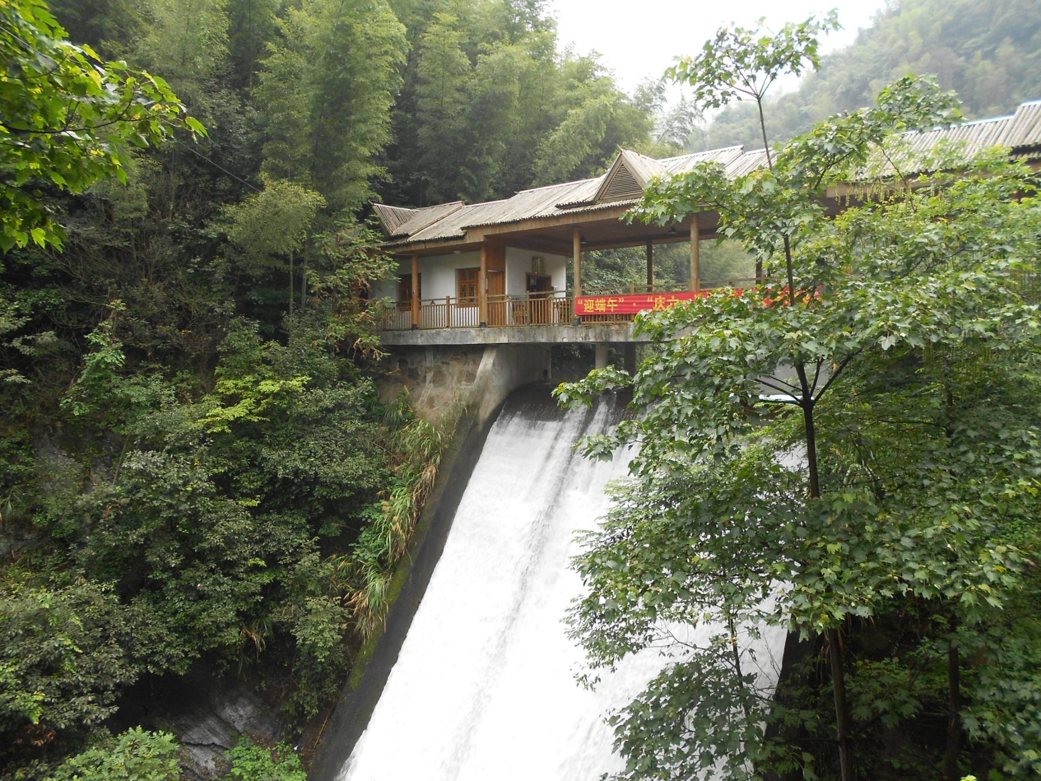 由三级跌水组成,以中间一级规模最大、最壮观。一把仙剑横空而来,穿过云霄,直入大地,上下二级规模较小,呈舒缓带和帘带状。在山间溯流而上,在瀑布边上行走,听着哗哗的水声,别有一番感触。