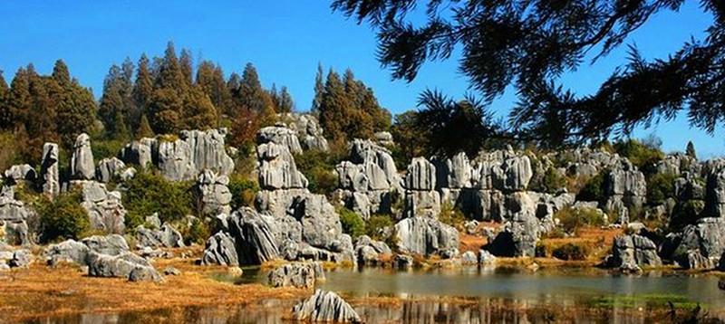 石林是一座名副其实的由岩石组成的“森林”,穿行其间,但见怪石林立,突兀峥嵘,姿态各异。由于石灰岩的作用,石柱彼此分离,又经过常年的风雨侵蚀,无数的石峰、石柱、石笋、石芽、形成了集奇石、瀑布、湖泊、溶洞、峰丛和丘陵于一身而显得千姿百态的石林。云南石林喀斯特无论是类型分布的多样性、溶岩发育的独特性、地质演化的复杂性、岩石机理的美学性还是人文风情的融合性、入内观赏的通达性等等方面,是世界唯一位于亚热带高原地区的喀斯特地貌风景区。