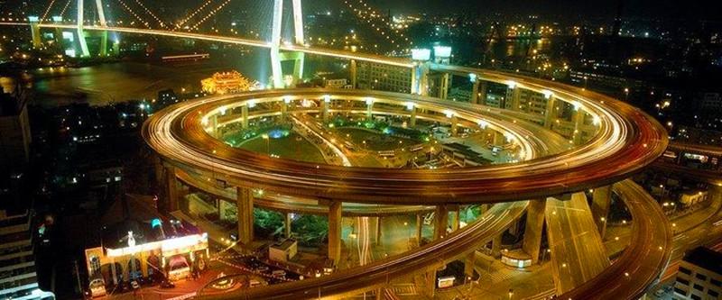 竣工通车于1991年12月1日的南浦大桥,总长8346米,主桥长846米,跨径423米,通航净高46米,桥下可通行5.5万吨巨轮。它是目前世界上第四大双塔双索面斜拉桥,呈“H”形的主桥塔高150米,上有邓小平同志亲笔书写的“南浦大桥”四个大字。主桥设有6条机动车道,桥面总宽为30.35米,两侧各设2米宽的人行道,游人可乘坐电梯到达主桥,一览浦江两岸无限风光。南浦大桥是黄浦江的第一座大桥,宛如一条巨龙横卧浦江之上,使上海人圆了“一桥飞架浦江”的梦想。