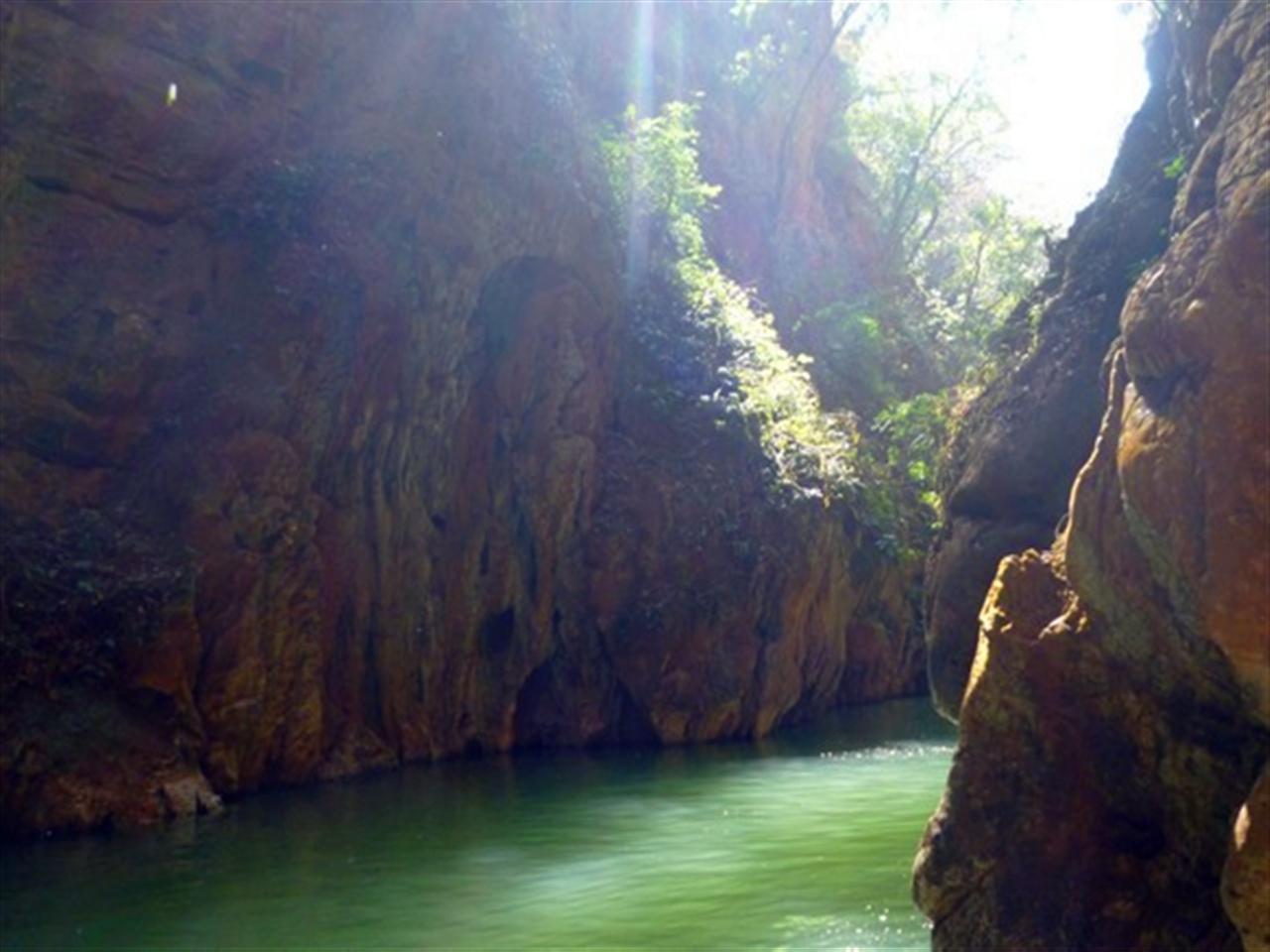荫翠峡是九乡景点的重中之重,民间有比喻说“九乡美景一石,荫翠峡独占三斗”。 荫翠峡长千米,大半可划船游览,峡谷两岸是峭壁苍崖,中间流淌着缓波碧水,崖刚水柔,水石参差,刚柔相济,宁静中不时有禽鸟啼唱、涓滴清响,如诗如梦,似歌似画。