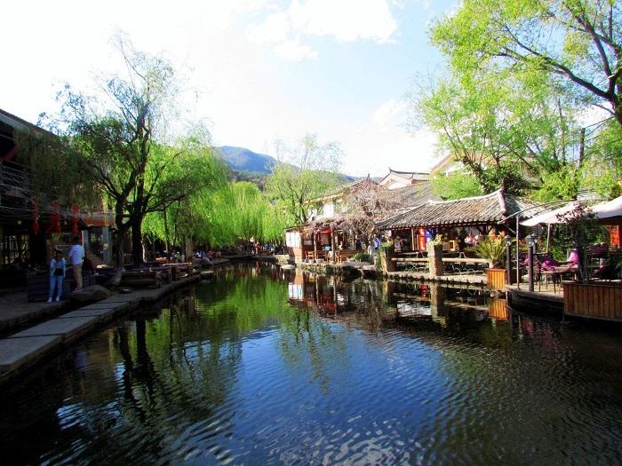 束河古镇是一座历史悠久、景点众多的古镇。古镇建于明代万历年间,又被人们称作龙泉村,这个古老的村落坐东朝西,古镇的后山则是巍峨壮丽的玉龙雪山的余脉,这里山峦青秀缠绵,林木苍翠,前来旅游的游客无不被这里的美景所折服、震撼。漫步走在青石板上,雨滴在小河中形成点点涟漪,岸边的杨柳似乎要滴出绿来,周遭只有雨水落在伞上的滴答声和小河流水的哗哗声,安静又舒服,一份不可多得的惬意。