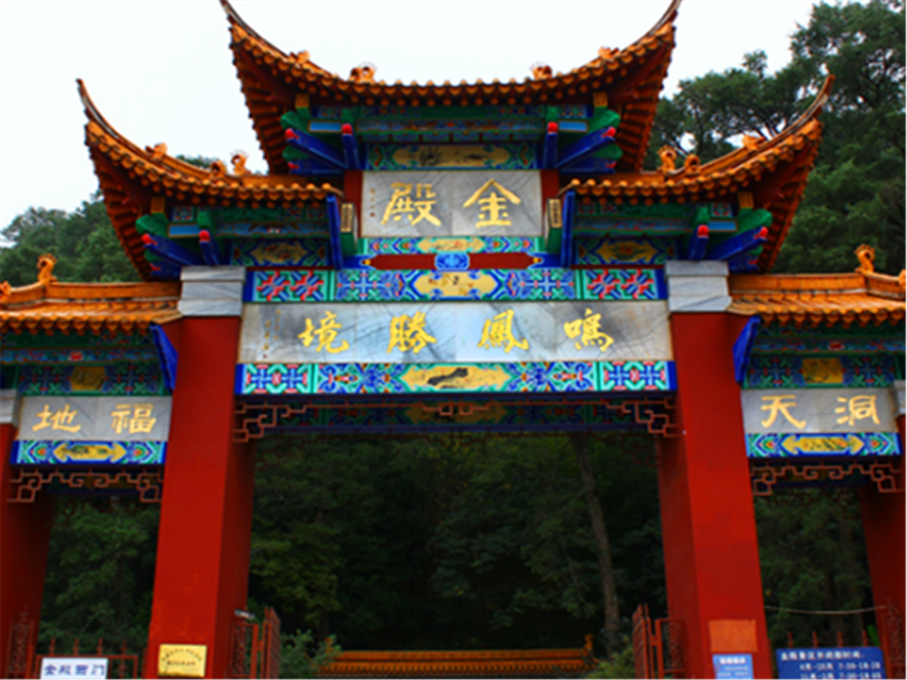 金殿公园因大殿用黄铜铸成,阳光照耀下,光芒四射,映得翠谷幽林金光灿烂,故而得名,又称为铜瓦寺。名声显赫的金殿属于道教太和宫的一部分,始建于明代(1602年),是中国四大铜殿之一,且保存最完好。康熙十年(公元1671年)平西王吴三桂重新修葺,历史悠久。金殿自然风光优美,小径穿林而过,苍翠树木遮天蔽日,偶有鸟鸣,深得道家文化之精粹。初春时节,景区“金殿博览苑”中的百亩茶花竞相开放,映出漫天绯红,美不胜收。